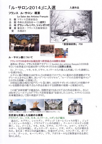 | 2024年 ・4月 第36回全日中展 上野 東京都美術館 生徒も含め、13名が16点出品し、林 葵章さんが外務大臣賞 阿部沙薔さんが参議院議長賞で、他も全員入賞でした。 私は故郷 天竜峡大橋 (三遠信高速歩道付き道路開通を記念して)出品しました。 ・8月8日〜17日 第7回日美展 国立新美術館 生徒出品。 ・9月 第12回鳳墨会水墨画展 (約50点展示)開催 ・10月 第3回海老名芸術祭出品。 ・11月17日〜12月8日まで第24回現代の創造展。 長野県飯田市美術博物館で開催され、仙境霧降の滝」掛軸・聯落を出品 ・12月11日〜22日まで第31回雪舟国際美術協会展が、国立新美術館で 開催され、「瑠璃沼の春雪」P50を出品、大賞受章 |