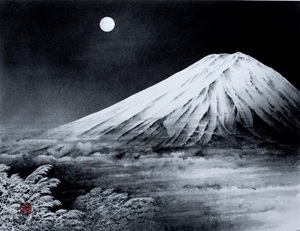 「秋月風韻」 平成24年(2012年) F6(41.0cm×31.8cm) 中秋の名月にススキを配してみた。 |